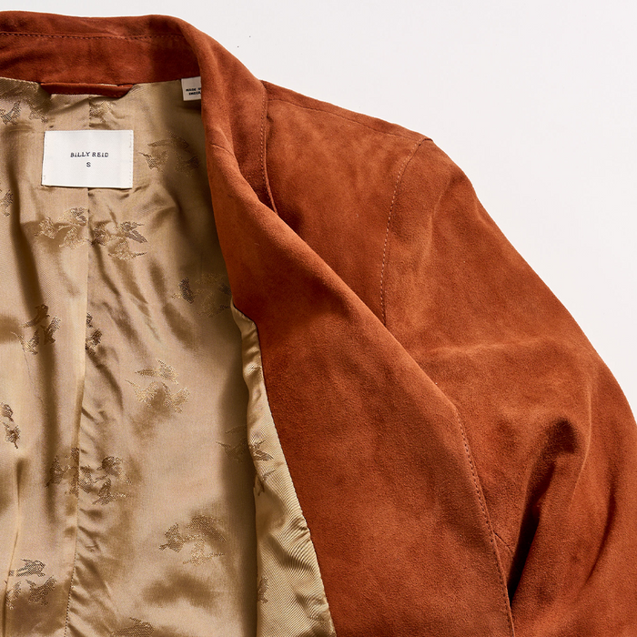 This jacket is fully lined in our custom pelican jacquard fabric.