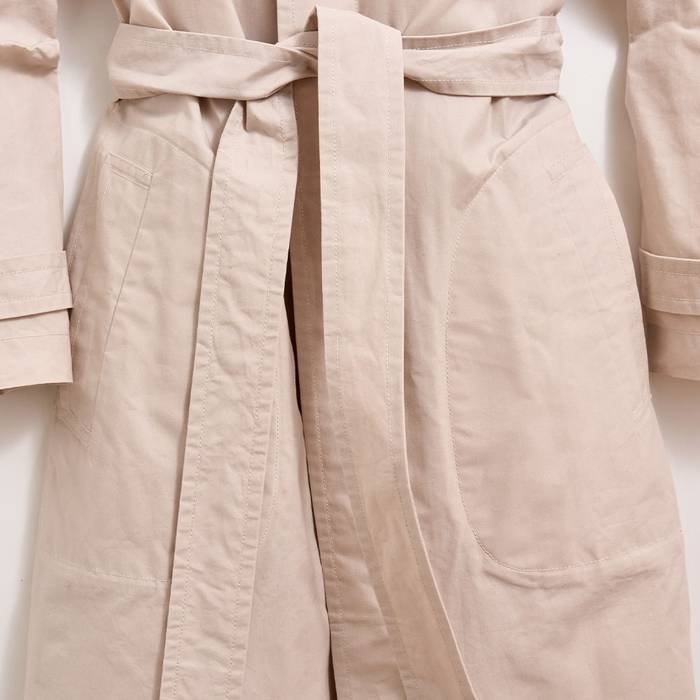 A trench coat goes with everything. This sophisticated, timeless style is ready to elevate any wardrobe choice. It’s not double breasted, so the closure is relaxed and loose to pull on over a jacket or simple tee and jeans. Our take on the classic coat also skips the dramatic lapel and instead offers a storm flap with our signature spade pocket. The piece is also cast in special fabric from our friends in Scotland at Halley Stevensons; inspired by the women’s coats of the 1960s.