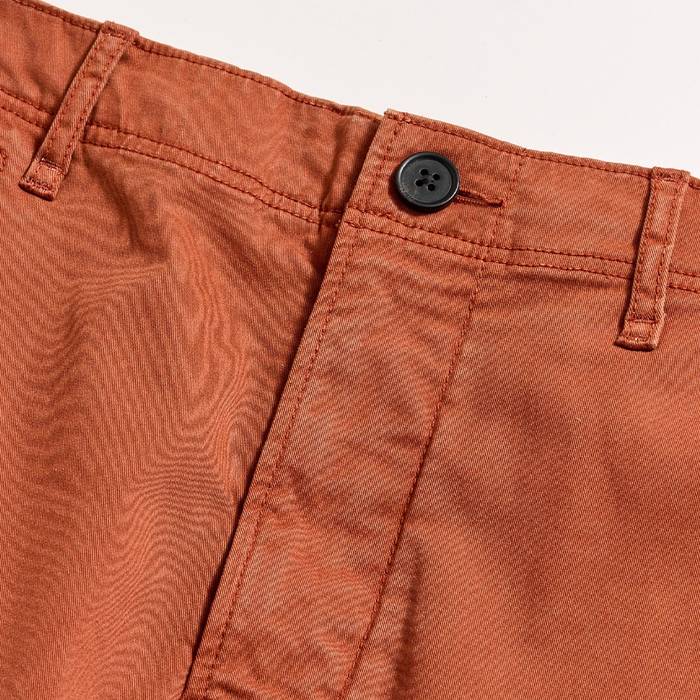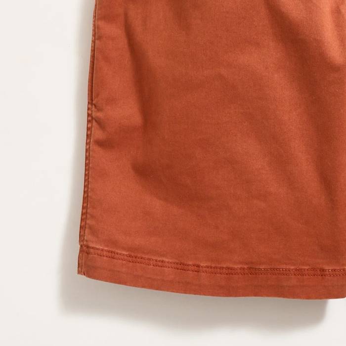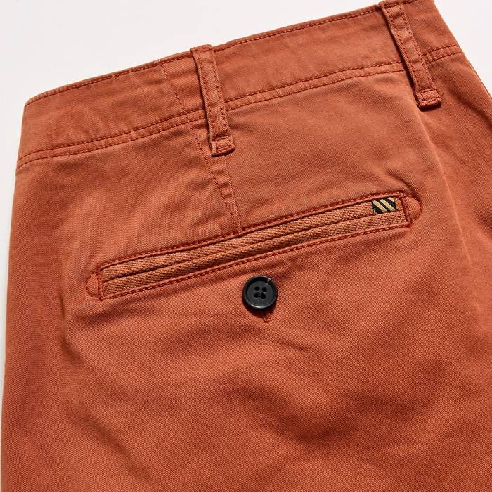 A wardrobe staple that is anything but ordinary. Turn our Chino Shorts inside out, and you'll see the craftsmanship. The pocket welts are reinforced with half-moon stitching, and bar tacking reinforces the pocket openings and belt loops for extra durability. These shorts are garment dyed for a lived in look and feel, creating a butter-soft hand and unmatched comfort from the first wear. They're cut to sit slim through the hip, then straight through the leg opening. Finished with just the right amount of stretch and finished with genuine horn buttons and our signature heirloom ribbon stripe at the back pocket.