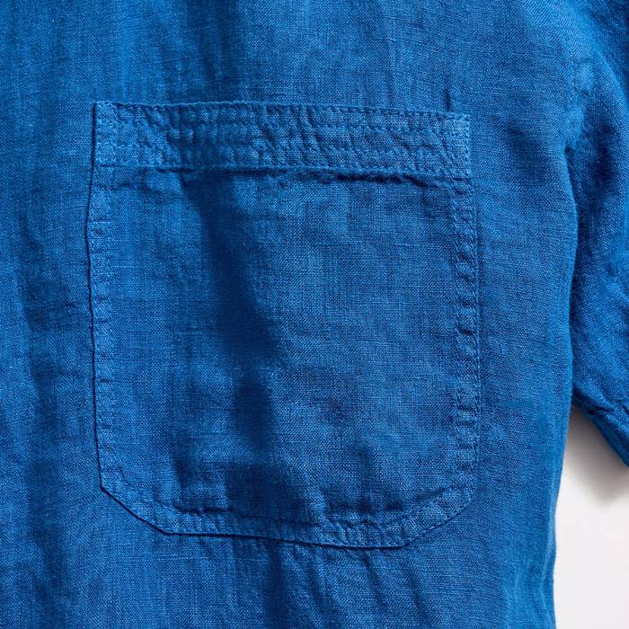 Our best-selling Tuscumbia shirt is the cornerstone of lived in luxury. This short-sleeve version is cut from lightweight linen that has been garment-dyed for an effortless, lived-in look and feel. It’s constructed in a standard fit and features a button-down collar, our signature notch pocket with double-needle stitching, and a box-pleated body. Thoughtfully finished with genuine mother-of-pearl buttons and a subtle detail: our heirloom ribbon applied to the bottom of the under placket.