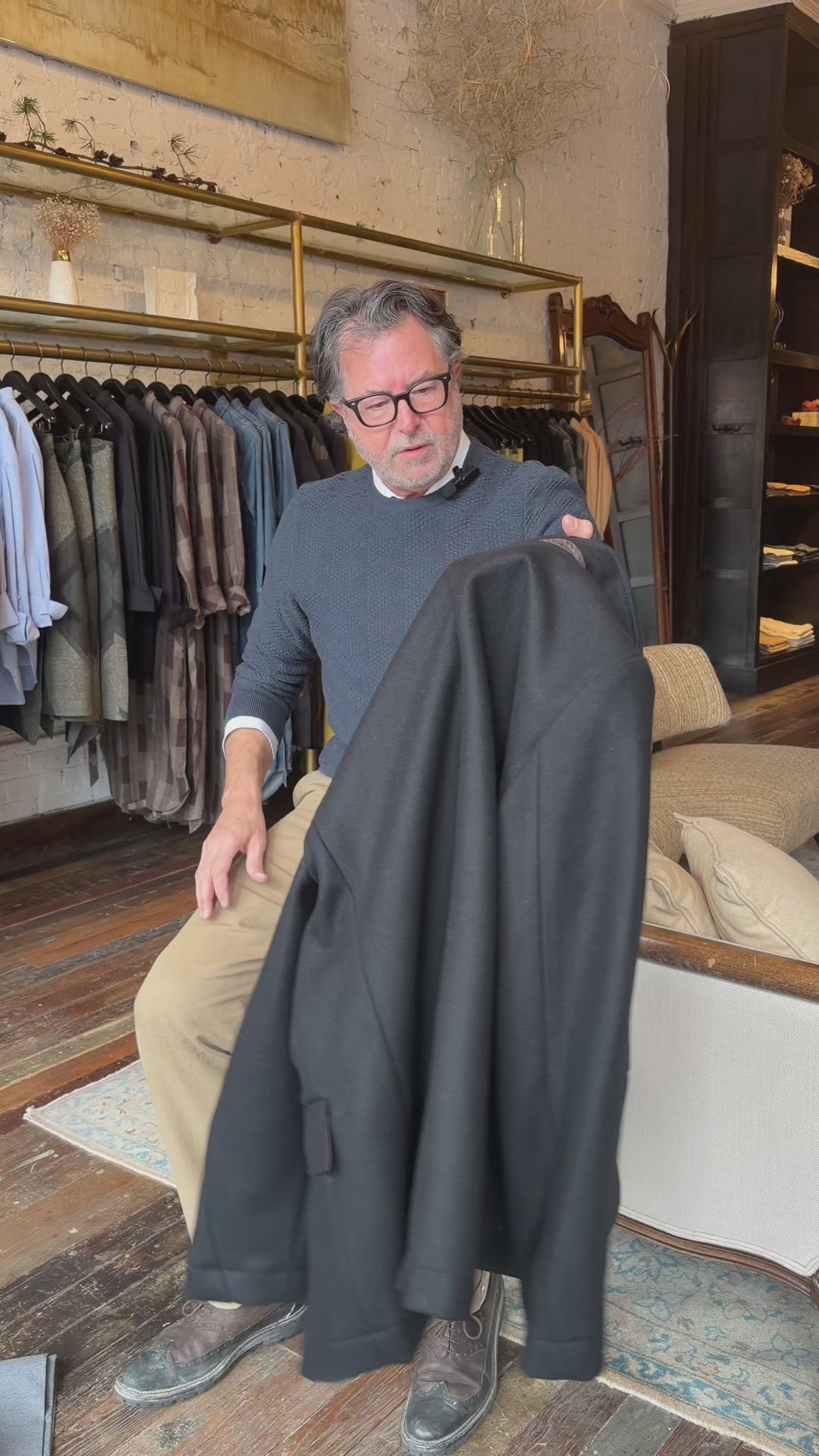 Our first version of the Bond Peacoat dates back two decades. Originally named after our Bond Street store in New York, Daniel Craig famously wore it in the James Bond movie Skyfall. The response to that moment made the peacoat one of our most beloved pieces. Our iconic Bond is made in Italy from warm, sturdy Melton wool and thoughtfully finished with bound seams. This mark of craftsmanship eliminates the need for a liner, reducing bulk and ensuring comfort. The piece is finished with our signature heirloom ribbon stripe embossed on luxe calfskin leather under the collar, handwarmer chest pockets, and genuine horn buttons. It remains an enduring take on a menswear classic.