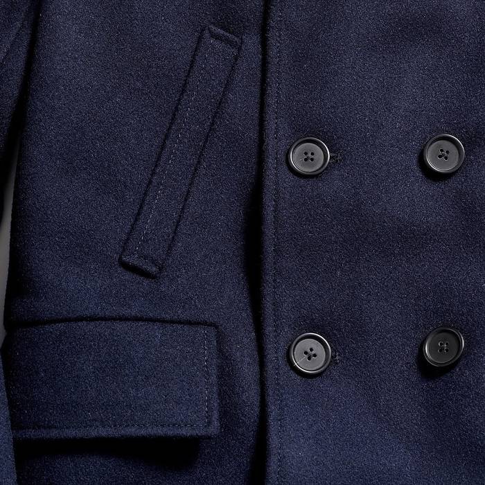 Our first version of the Bond Peacoat dates back two decades. Originally named after our Bond Street store in New York, Daniel Craig famously wore it in the James Bond movie Skyfall. The response to that moment made the peacoat one of our most beloved pieces. Our iconic Bond is made in Italy from warm, sturdy Melton wool and thoughtfully finished with bound seams. This mark of craftsmanship eliminates the need for a liner, reducing bulk and ensuring comfort. The piece is finished with our signature heirloom ribbon stripe embossed on luxe calfskin leather under the collar, handwarmer chest pockets, and genuine horn buttons. It remains an enduring take on a menswear classic.
