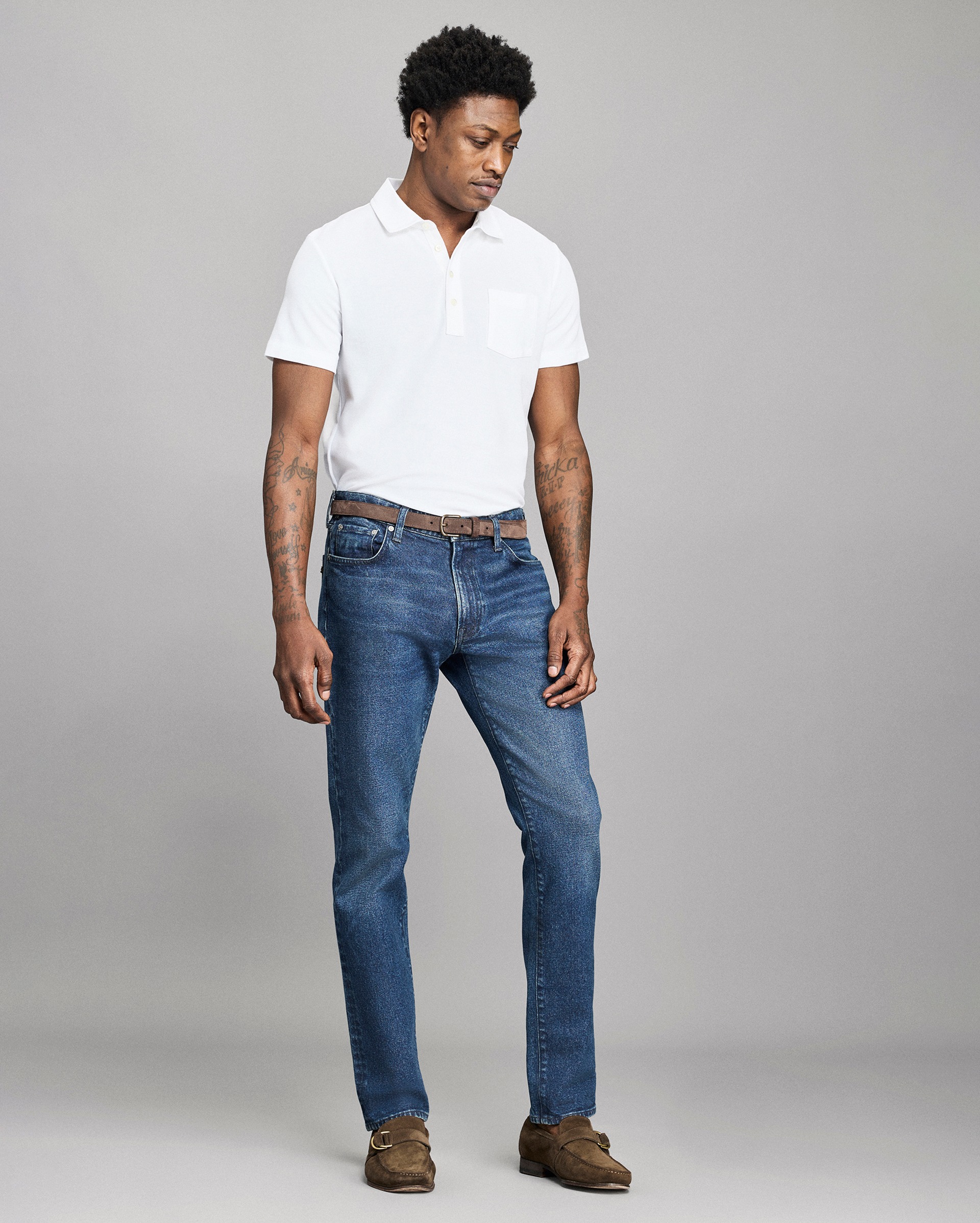 The Citizens of Humanity x Billy Reid collaboration brings you Citizen of Humanity's bestselling Adler fit in three exclusive-to-Billy Reid washes. Made in the USA, the Adler Slim Straight fit offers a slightly higher rise and fits full through the waist and thigh with a small taper from the knee down. This exclusive wash is a medium vintage indigo with noticeable fading and whiskering, providing an everyday and casual ease. It's a lightweight comfort stretch denim, perfect for all-day wearability. Finished with thoughtful Billy Reid touches, like leather washers and a beautiful leather patch embossed with our signature heirloom ribbon stripe.
