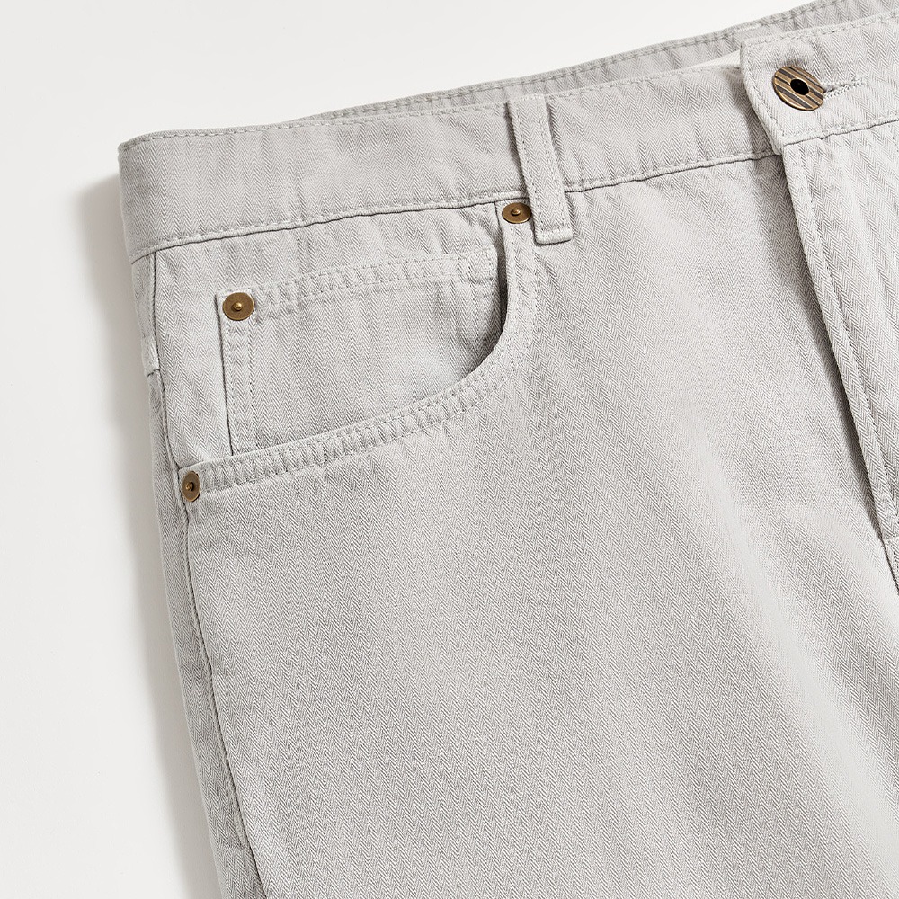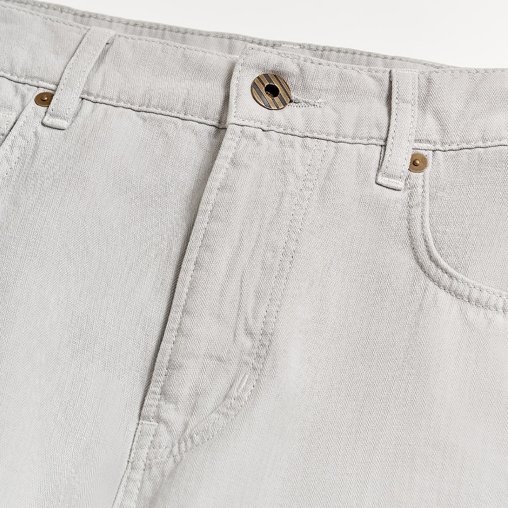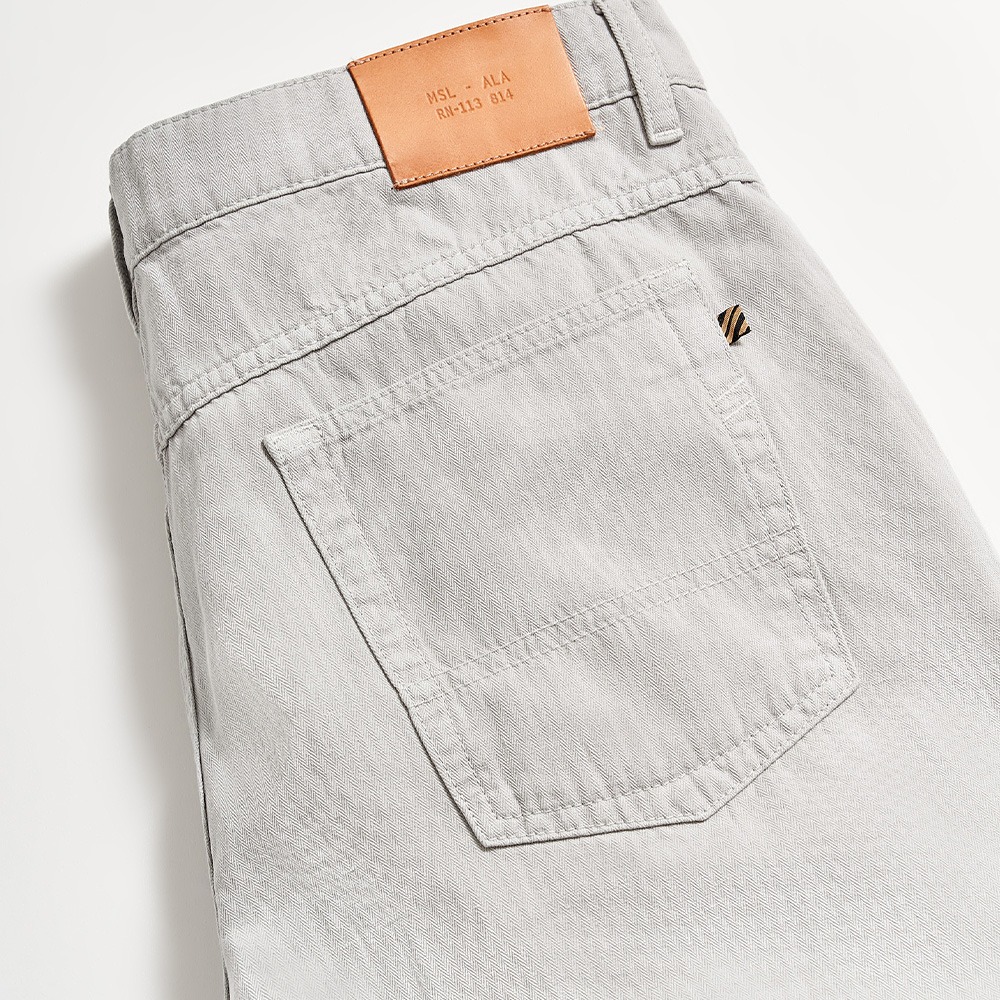 As comfortable as your favorite pair of jeans, these pants are made in a breathable cotton-linen blend with just a hint of stretch for ease of movement and garment-dyed for a lived-in look and feel. Finished with subtle details like an antique brass tack button embossed with our heirloom ribbon stripe and our signature MSL leather patch.