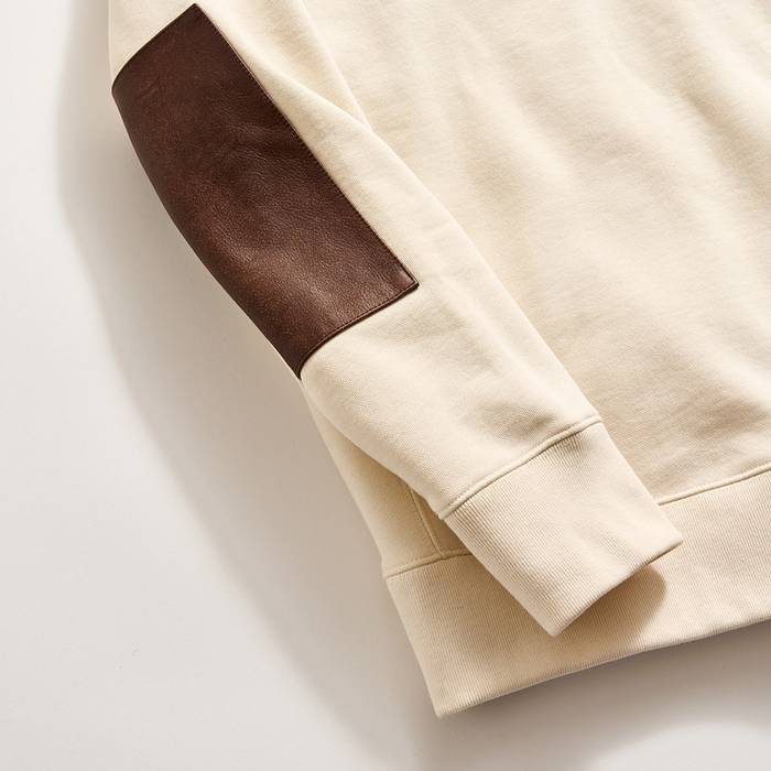 Introduced to the collection in 2008 as a practical way to keep the elbows of "your favorite sweatshirt" from becoming worn, the Dover Sweatshirt has become an iconic piece that only gets better with age. It's ultra-soft and the perfect weight, and it features our signature distressed leather elbow patches, rope seams at the armholes, and twill tape reinforcement at the back neck. This seasonal "natural" colorway is a great neutral that works into any wardrobe. The Dover is a mainstay for us and continues to be a favorite season after season.