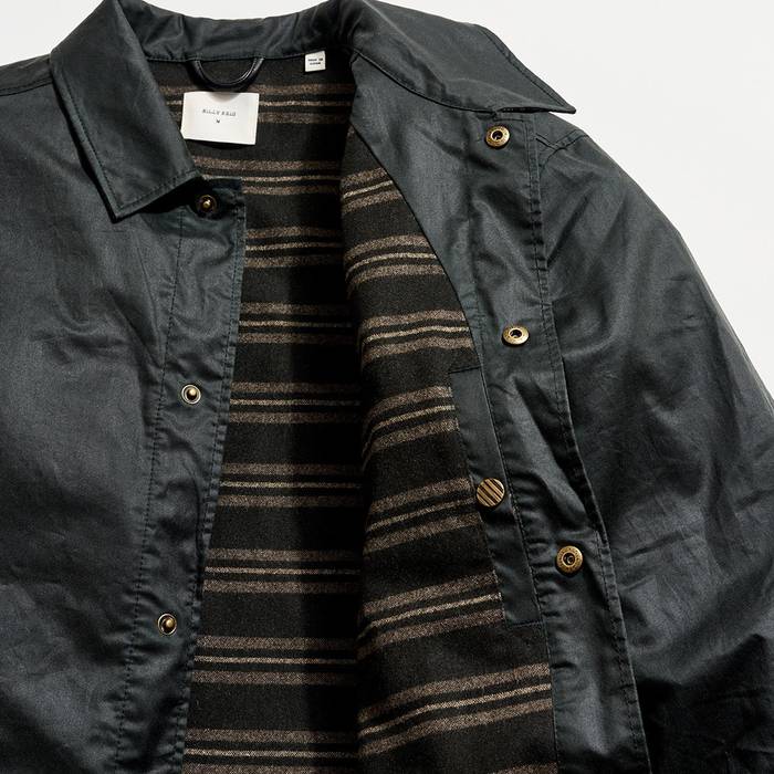 We tapped our friends in Scotland at Halley Stevensons to provide the fabrication for one of our new favorite jackets. The Harrison Jacket is crafted in a classic barn jacket style using the mill’s water-repellant waxed cotton. It’s finished with fully lined sleeves and body, a striped liner, and storm flap pockets at the waist. The waxy finish on the outside will stand up to the elements and protect from rain and wind while the wool-blend lining provides added warmth. A durable essential that will keep you looking smart, rain or shine.