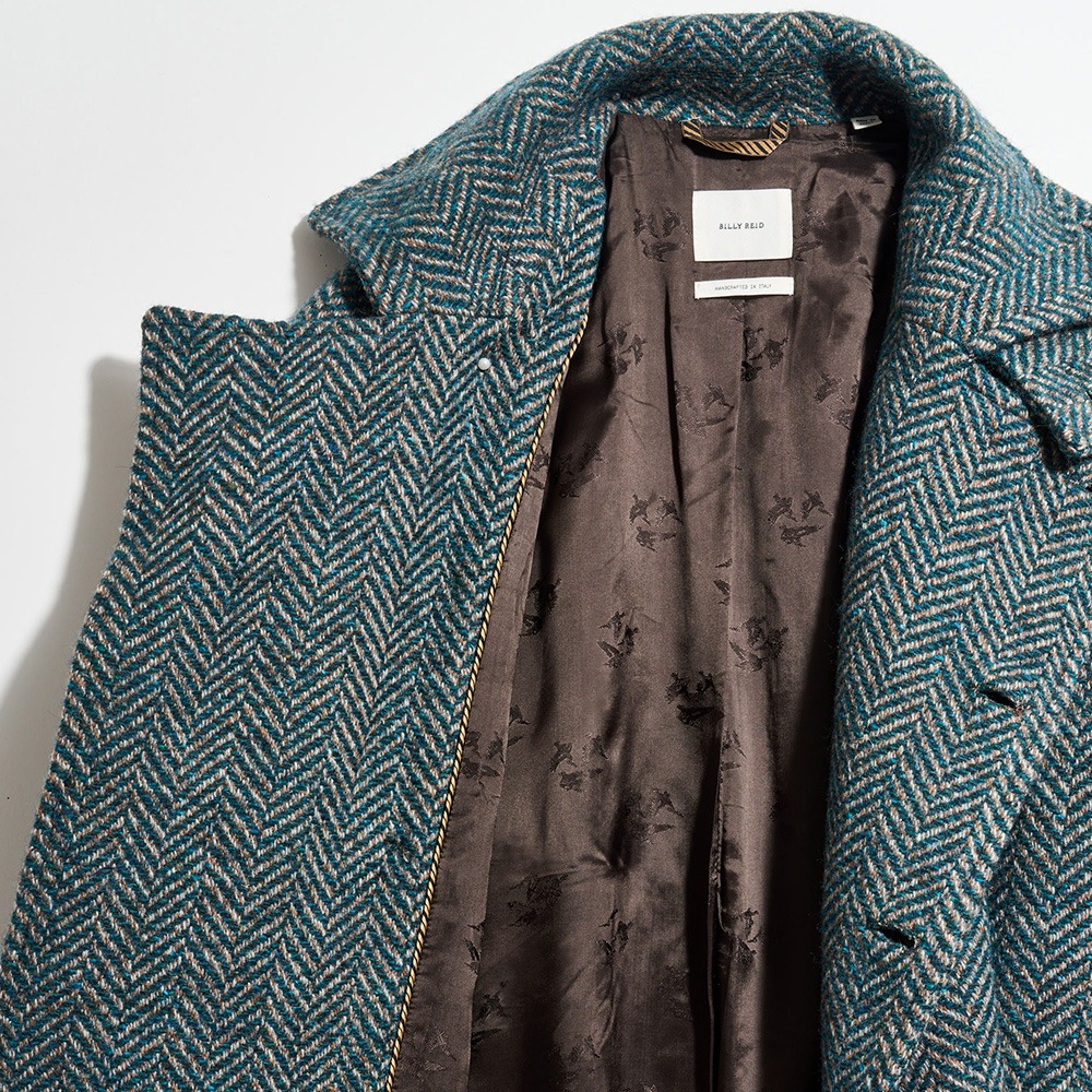 The deck coat is a menswear staple, inspired by those worn by WWII-era sailors to keep warm at sea. Our version has been updated with a feminine double-breasted profile, and upgraded with a sumptuous wool blend in a timeless herringbone tweed. Thoughtful finishing touches include a self belt at the back, self cuff tabs at each sleeve, genuine dark horn buttons, and full lining in our custom java pelican jacquard.