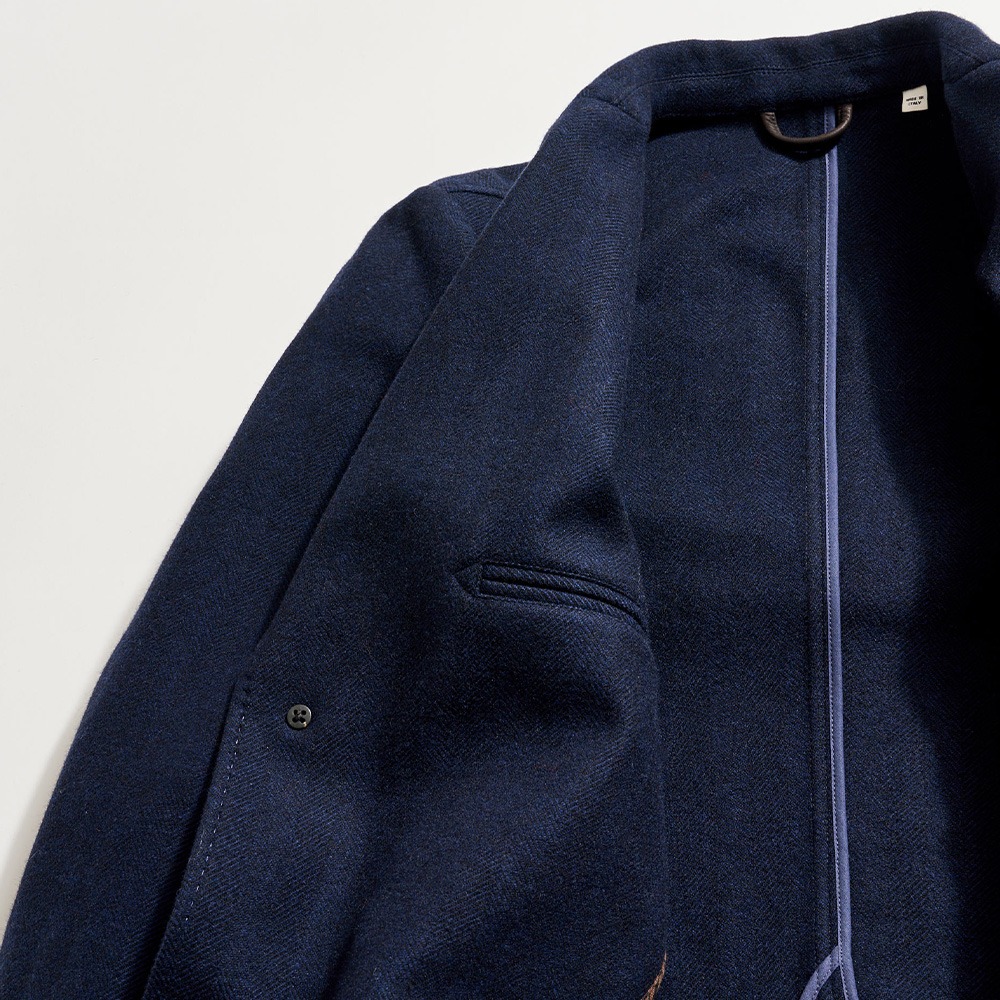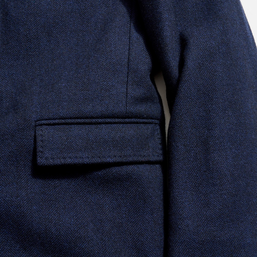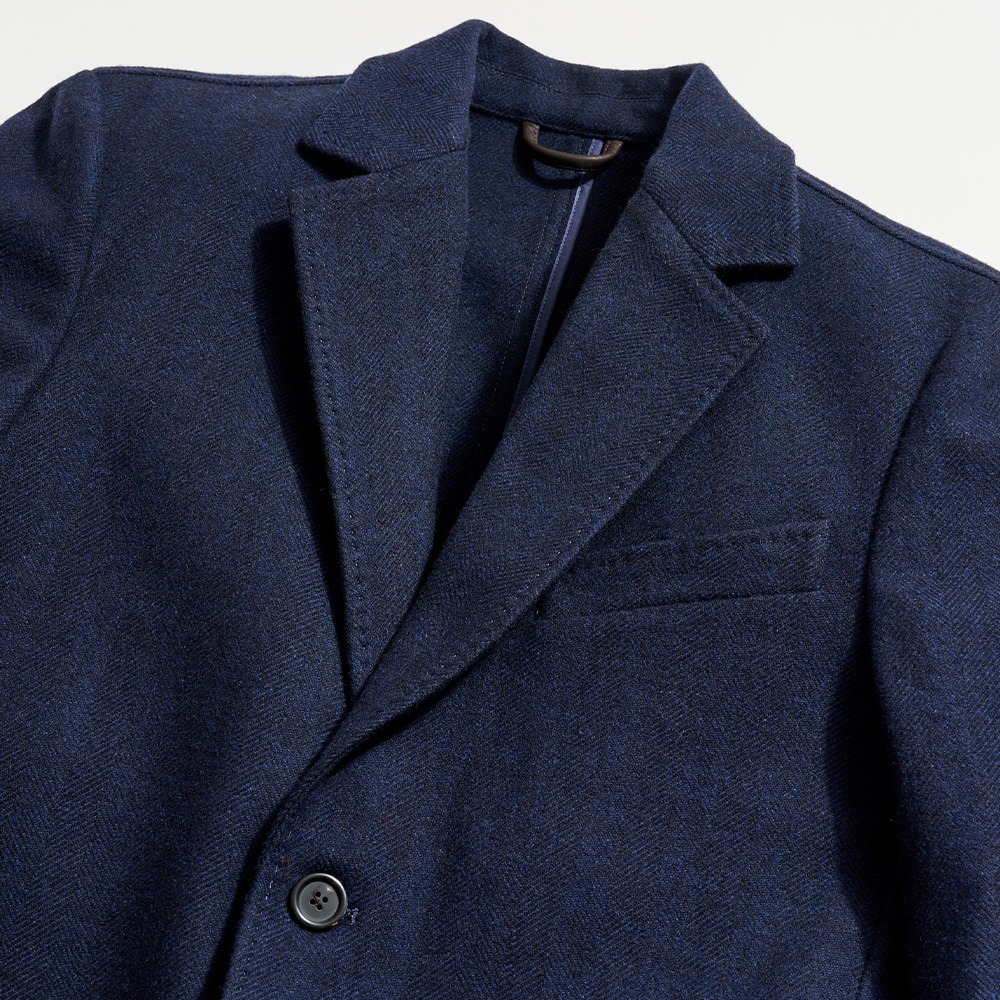 This classically-cut overcoat wears like a tailored suit. Two pockets on the exterior and two more on the interior of the coat make for lots of storage, while luxe details like dark horn buttons and a leather undercollar (embossed with our signature heirloom ribbon stripe) keep it elevated, as does the Italian craftsmanship. The coat is also cut with extra room to fit comfortably over a suit, in a beautifully subtle blue herringbone to complement anything underneath it.
