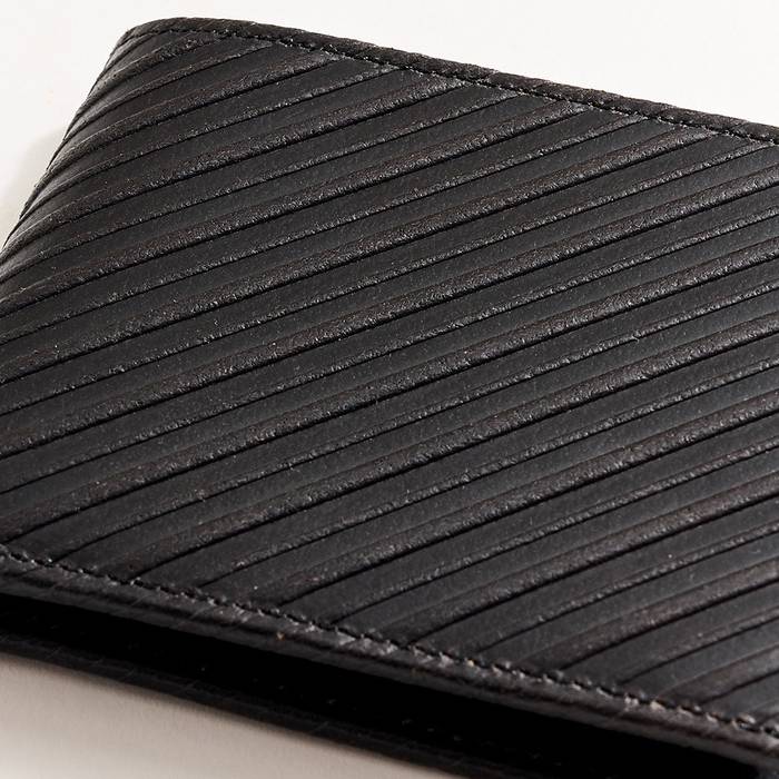 This wallet's leather is embossed with our heirloom ribbon stripe.