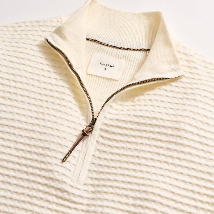 This half zip is crafted from a crisp, lightweight cotton-linen blend.