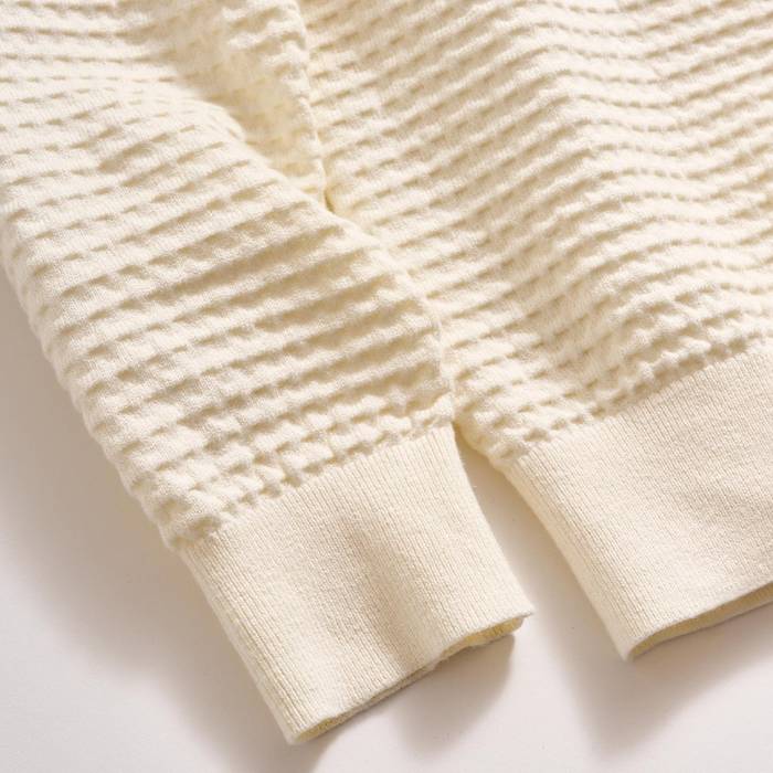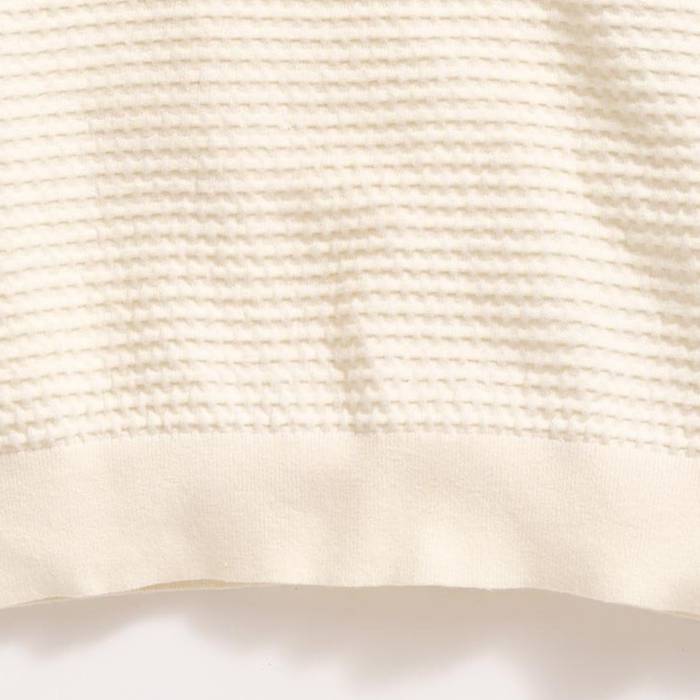 The fabric is crafted into a luxe textured knit.
