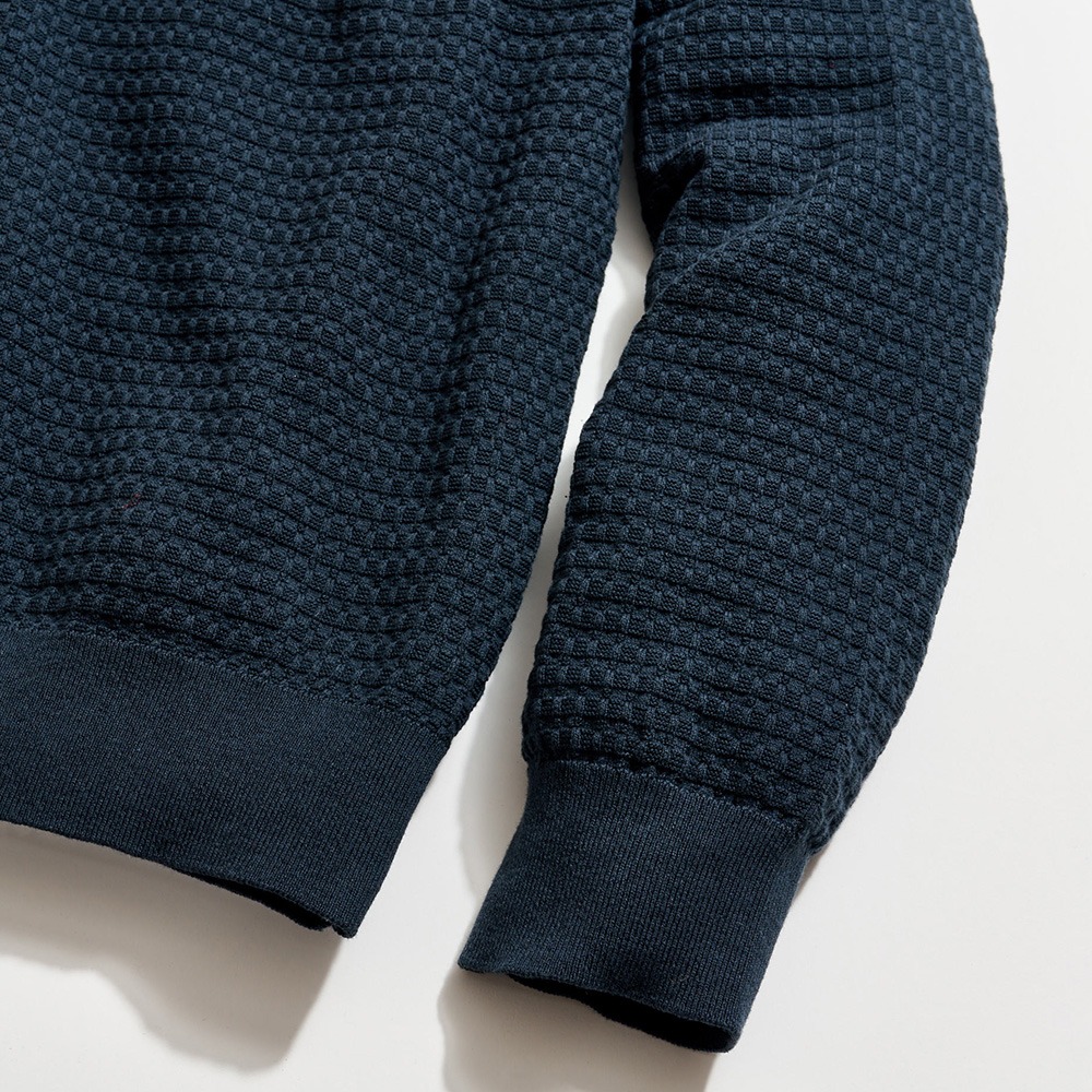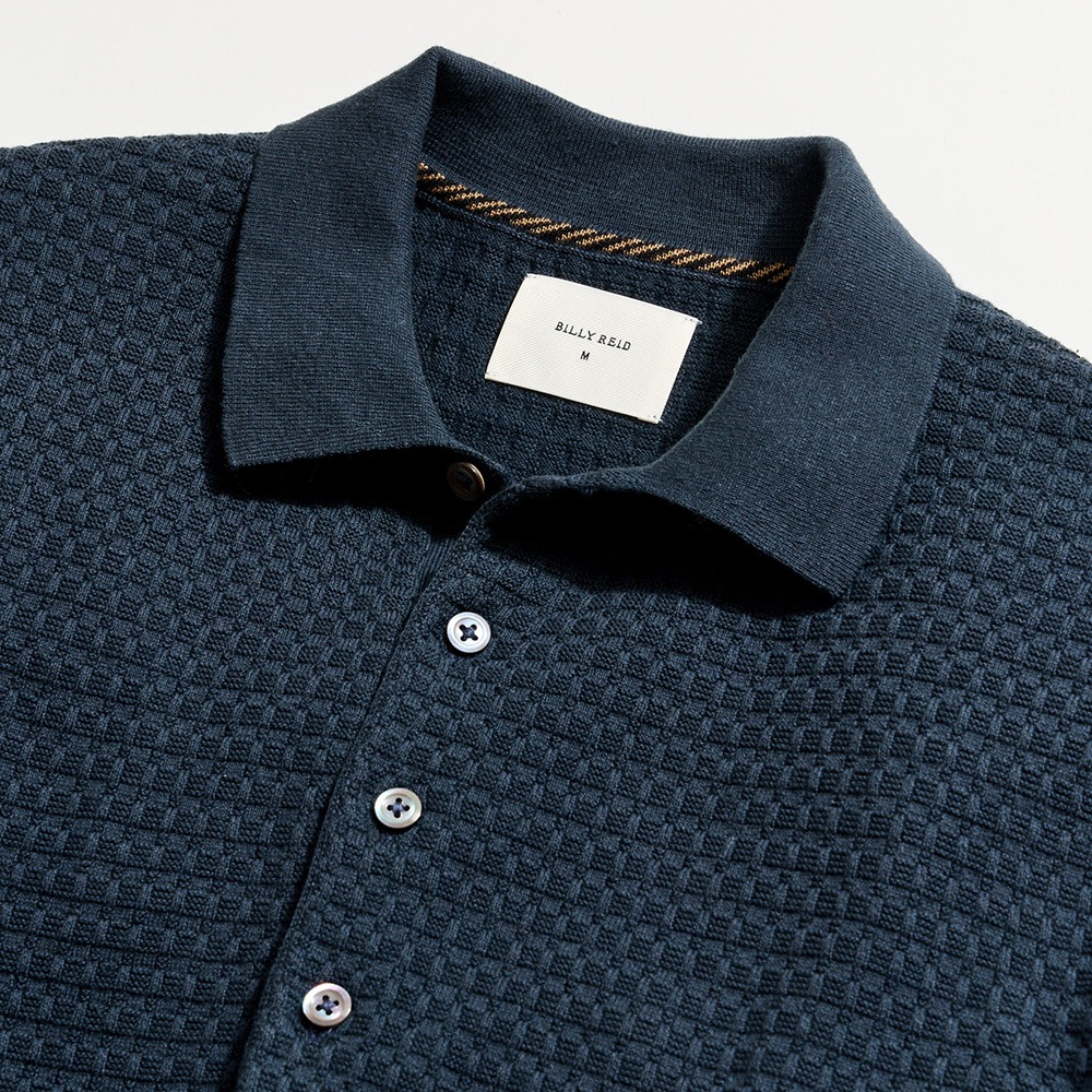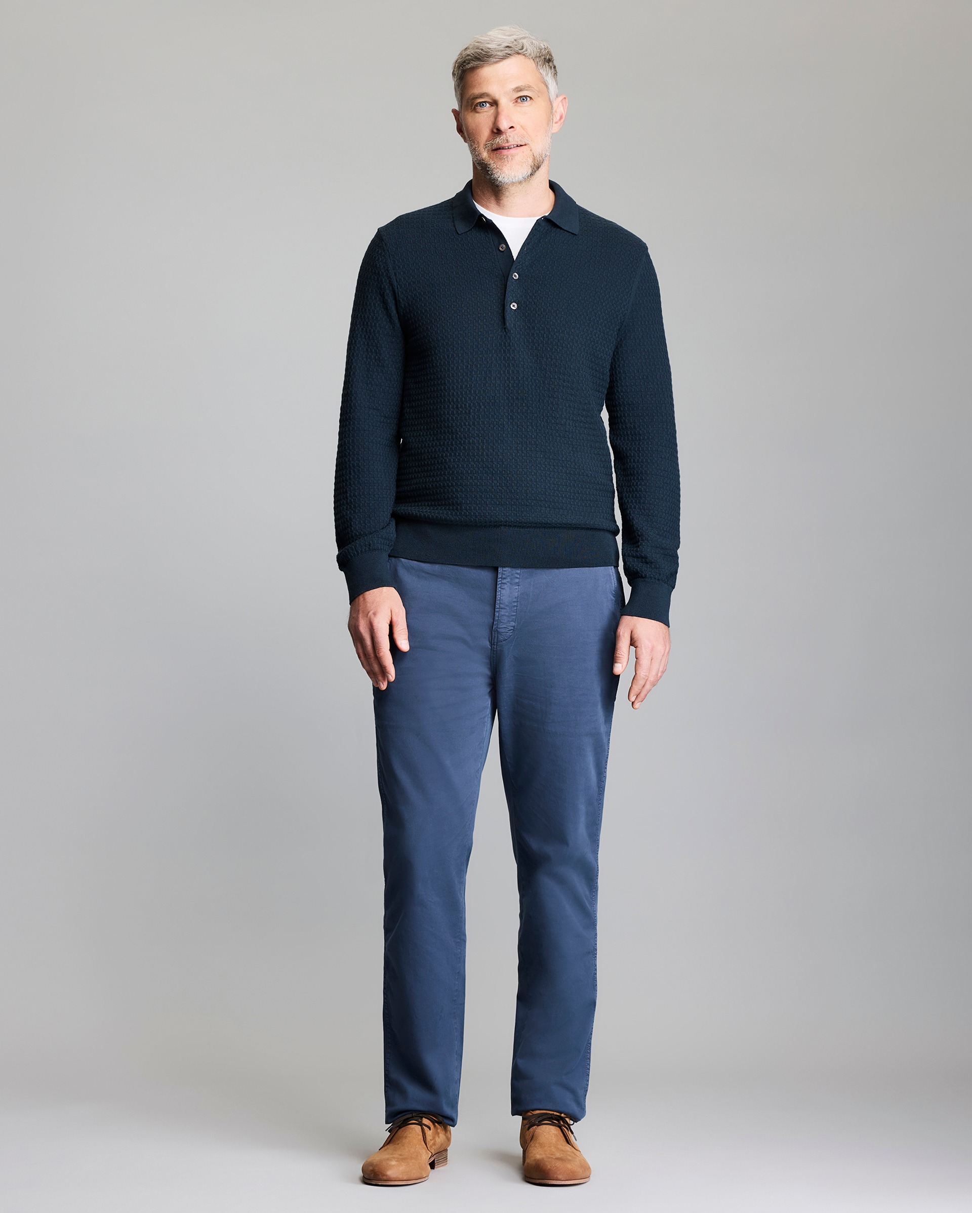 For those dressier nights out, our long-sleeve Grid Links Sweater Polo is the perfect lightweight piece to elevate your style. The soft cotton knit has our custom Grid Links pattern throughout, and finished with refined touches like smoke mother of pearl buttons and ribbing at the cuffs, collar, underplacket, and bottom hem. It can be easily dressed up or down for wherever you’re headed. We love it with a trouser for a more polished look.
