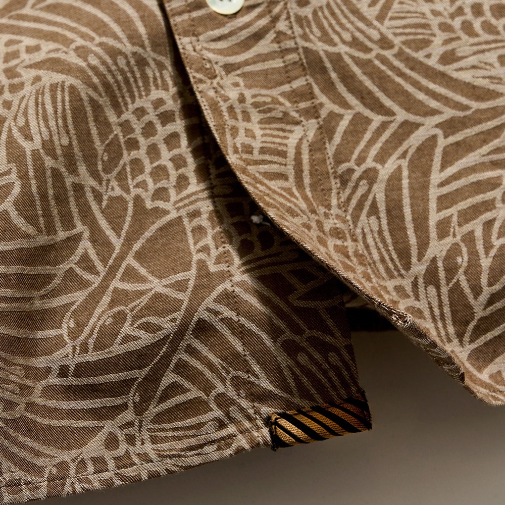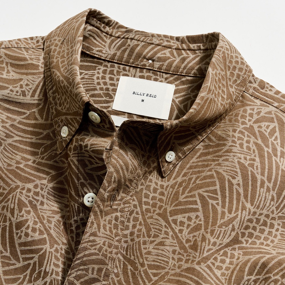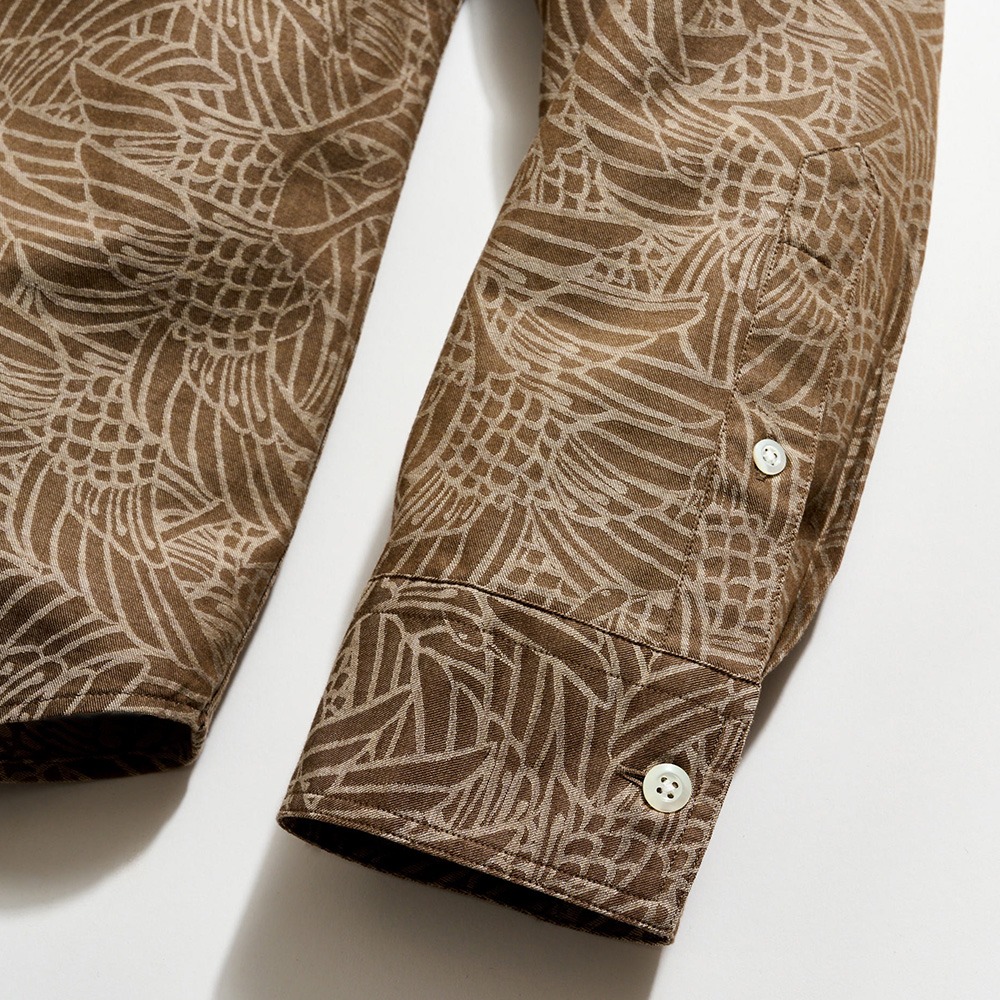 Our best-selling Tuscumbia shirt is the cornerstone of lived-in luxury. This version is cut in a standard fit and in a super-soft cotton blend that showcases a swarm of herons. The heron artwork is completely custom to Billy Reid and features a melange yarn for a subtle texture. The construction includes a button-down collar, foldover placket, and a tonal thread throughout. Thoughtfully finished with mother-of-pearl buttons, a notch pocket, and a subtle detail: our heirloom ribbon applied to the bottom of the underplacket.