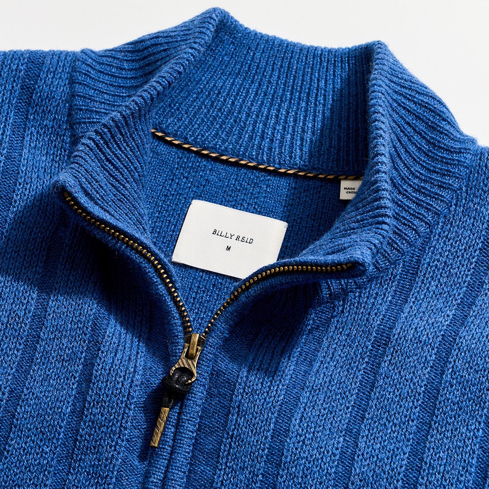 This classic cardigan is made from a ribbed merino wool in a classic blue that will only get better with time. The standard fit wears easily over a button down or simple t-shirt. It’s also finished with helpful details like side seam pockets to keep your hands warm, a leather drawcord , and a two-way zip closure for convenience.
