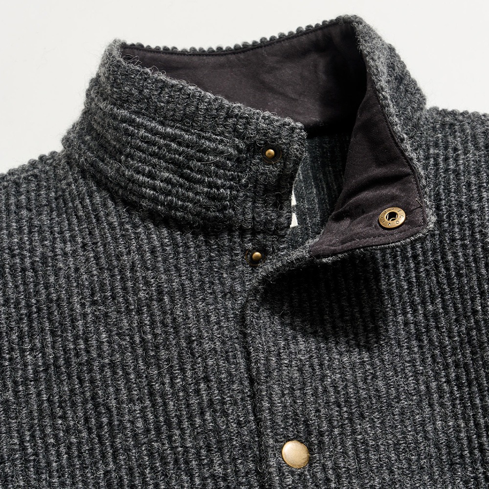 Our version of a classic fleece jacket is crafted in Japan from a luxurious boucle corded stitch wool that combines comfort and warmth in equal measure. Refined finishing touches include antique brass snaps on the cuff and front center, our heirloom clamshell at the back neck, and welt pockets at the waist and interior. An easy, but elevated, piece you'll turn to throughout the season.