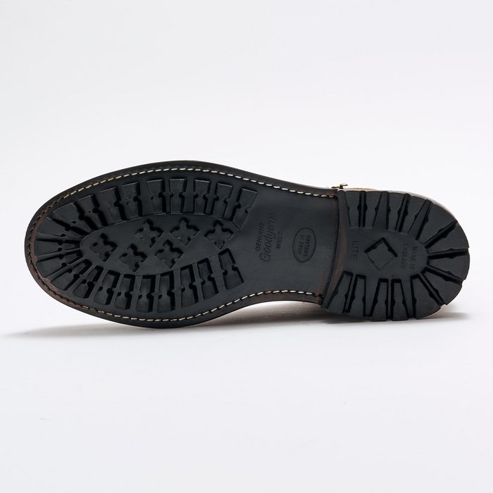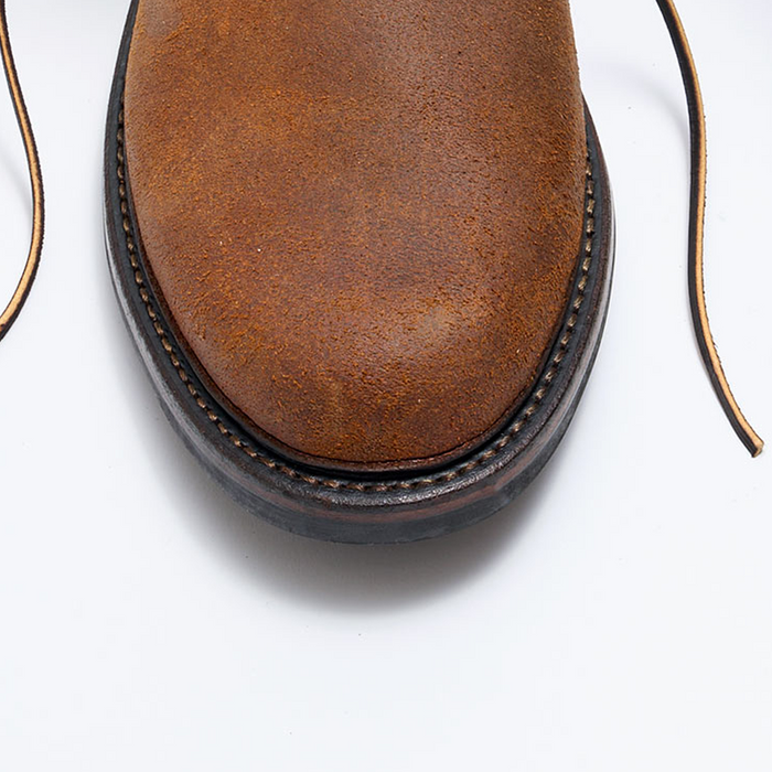The Oak Street Bootmakers × Billy Reid Trench Boot combines the classic silhouette of a heritage military officer's boot with the rugged charm of a gentleman's hunting boot. Made entirely in the USA from waxed full-grain roughout leather with a character that only improves with age—and soft but durable commando rubber soles—the result is something new yet familiar, with a timeless versatility suitable for wear with everything from denim to chinos to tailored trousers. But despite its ability to step into a casual role, this Trench Boot is made to the standard of the finest dress shoes with hand-lasted Goodyear Welt construction so that it can be resoled again and again and backed by Oak Street Bootmakers' Factory Guarantee.