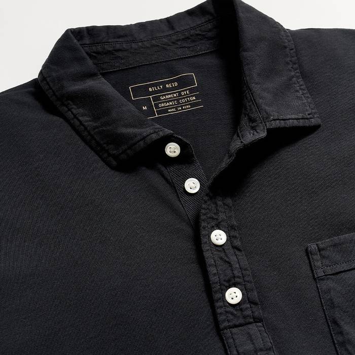 First shown in our Spring 2002 runway show, the Pensacola Polo has become a fan-favorite and beloved mainstay in our collection. It seems simple, but there’s more to it than meets the eye, and if you blink - you’ll miss what separates it from the pack. It’s cut in butter-soft organic cotton and then garment-dyed for a lived-in look and feel. The fit is classic and boasts straight sleeves without banding for an elevated look. The collar and placket work hard and maintain their structure (no more floppy collar) thanks to woven cotton sheeting. The under-placket is also finished with twill tape for a refined touch when worn unbuttoned. The chest pocket is simple yet sturdy and features diagonal stitching, reminiscent of our signature heirloom ribbon stripe and the stripe itself shows up inside the vents at the wearer’s waist for a subtle Billy Reid detail. The Pensacola Polo handsomely epitomizes effortless yet elevated.