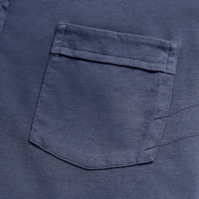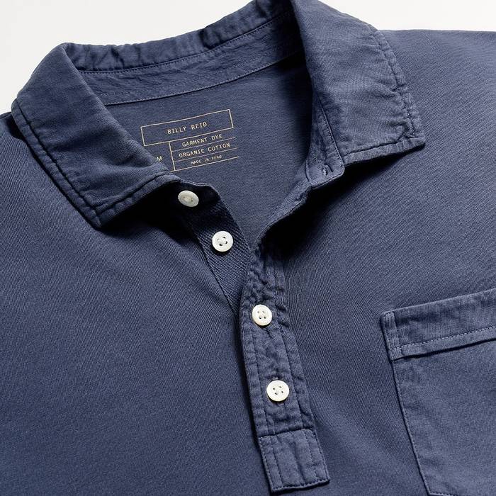 First shown in our Spring 2002 runway show, the Pensacola Polo has become a fan-favorite and beloved mainstay in our collection. It seems simple, but there’s more to it than meets the eye, and if you blink - you’ll miss what separates it from the pack. It’s cut in butter-soft organic cotton and then garment-dyed for a lived-in look and feel. The fit is classic and boasts straight sleeves without banding for an elevated look. The collar and placket work hard and maintain their structure (no more floppy collar) thanks to woven cotton sheeting. The under-placket is also finished with twill tape for a refined touch when worn unbuttoned. The chest pocket is simple yet sturdy and features diagonal stitching, reminiscent of our signature heirloom ribbon stripe and the stripe itself shows up inside the vents at the wearer’s waist for a subtle Billy Reid detail. The Pensacola Polo handsomely epitomizes effortless yet elevated.