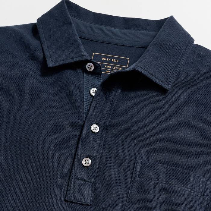 First shown in our Spring 2002 runway show, the Pensacola Polo has become a beloved mainstay in our collection and our customers' wardrobes. Our latest iteration of the Pensacola Polo is a pique, knit from ultra-soft Pima cotton, which gives it a beautiful hand and optimal comfort. It's chock full of thoughtful Billy Reid design details like a woven undercollar, twill tape under the placket, signature heirloom ribbon stripe detailing inside the vents, and stitch detailing at the patch pocket reminiscent of our signature heirloom ribbon stripe. It's offered in various colors and remains a year-round foundational piece in the collection.