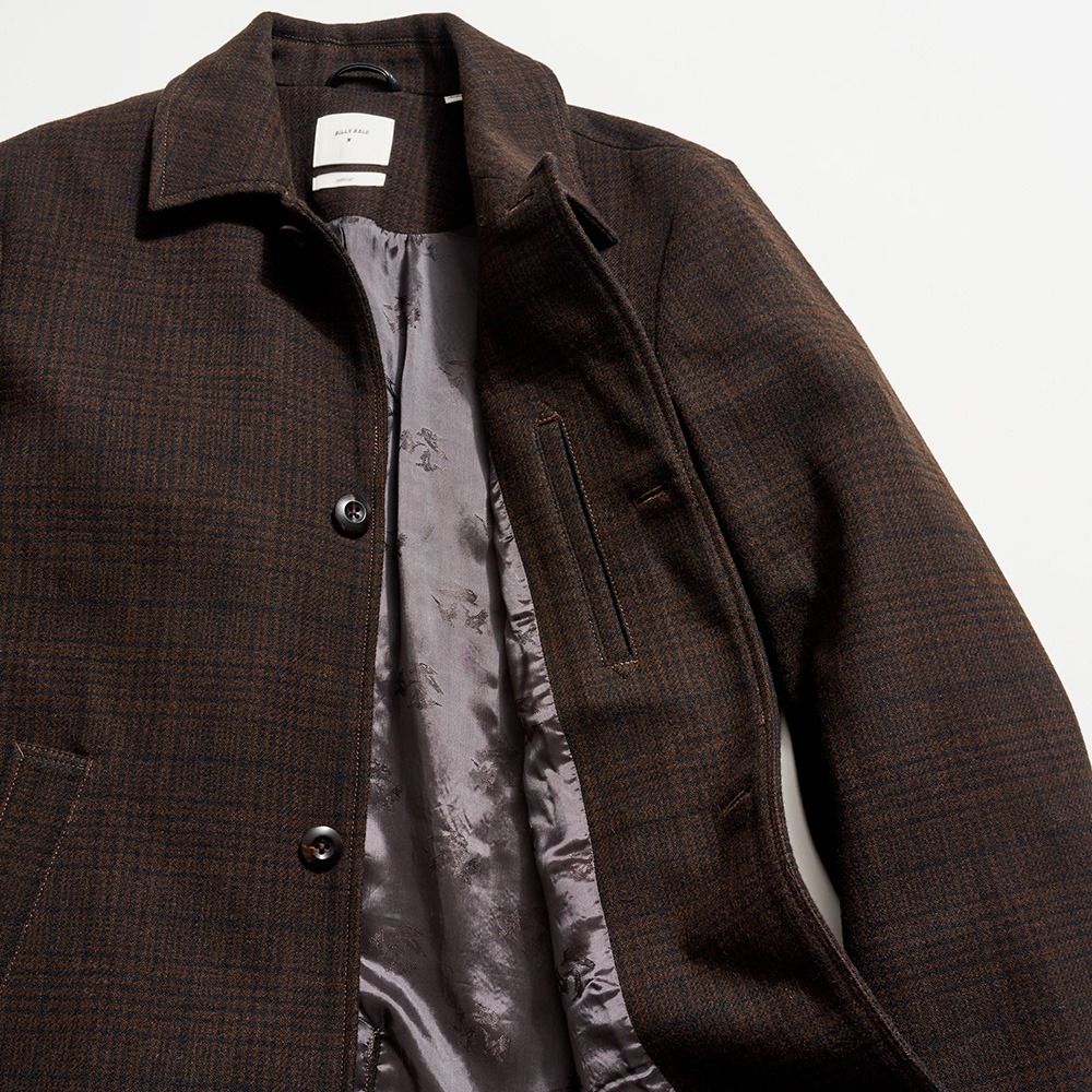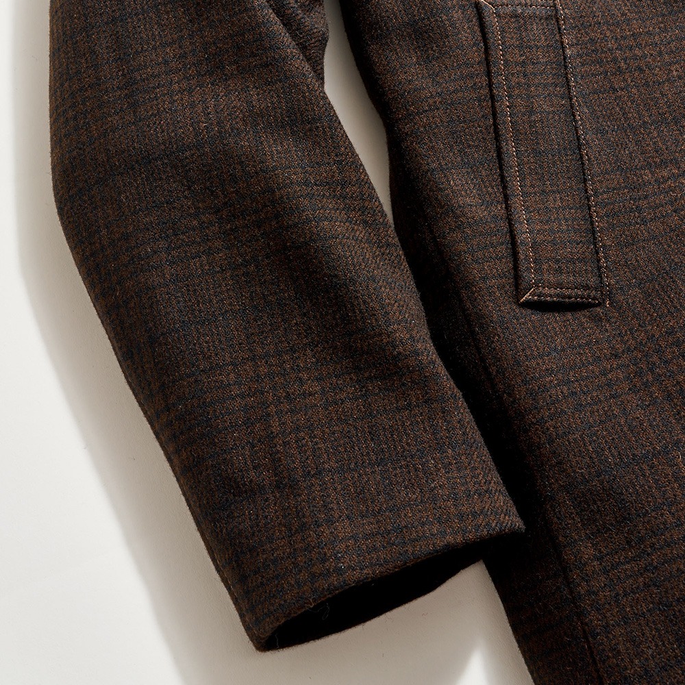 The Cooper is a bestseller for a reason: It offers the perfect fit, designed for wearing over your favorite sport coat. This new version comes in a beautiful wool blend in a subtle plaid. It has two single welt pockets at the front, a center vent in the back, and a navy pelican lining that feels soft on the body while the wool outer layer keeps you warm. It's finished with dark horn buttons and a leather undercollar embossed with our heirloom ribbon stripe.