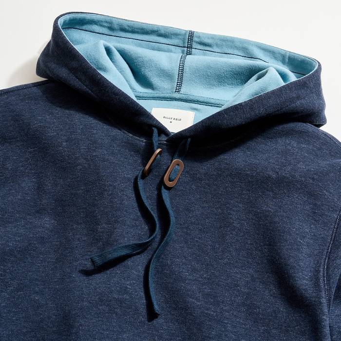 This hoodie features subtle details like our heirloom ribbon stripe clamshell at the back neck.