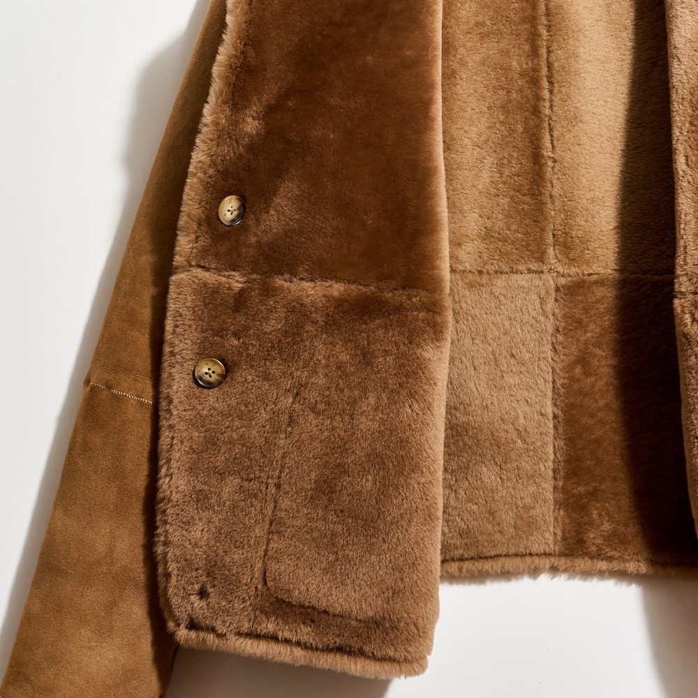 A borrowed-from-the-boys version of our bestselling Shearling Blake Jacket, this one-of-a-kind piece offers the ultimate in lived-in luxury, thanks to a warm and sumptuous shearling with an incredible hand feel. It features thoughtful design details like genuine dark horn buttons, and patch pockets at the sides. It fits like a classic riding jacket, is made to go the distance, and only gets better with wear.