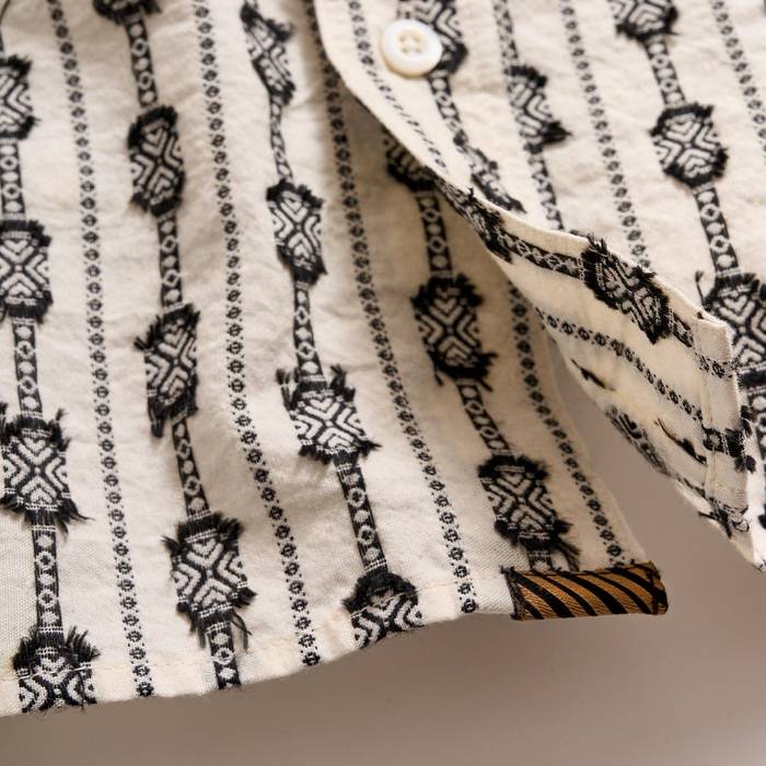 This shirt is made of a cotton blend and finished in a boucle.