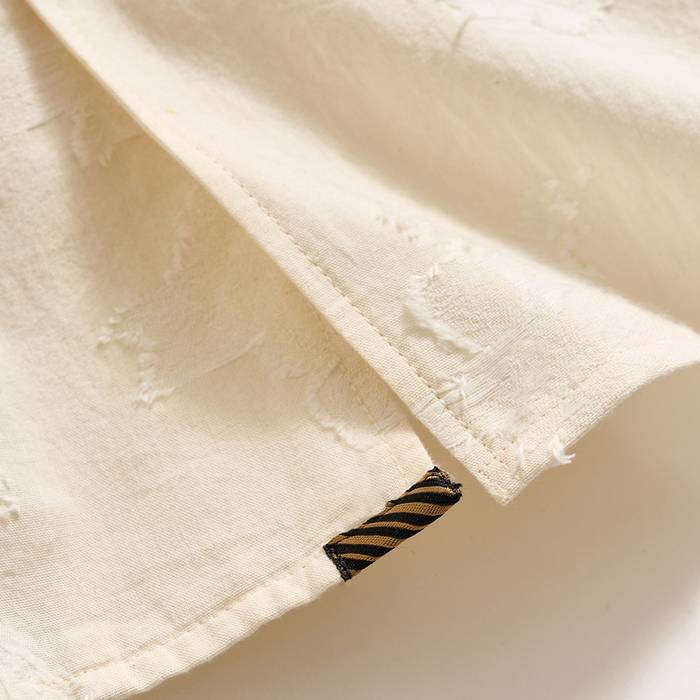 The shirt has a playful jacquard pattern.