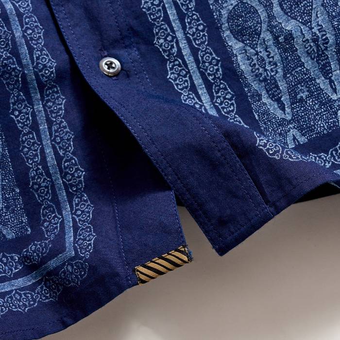 This treme shirt is built for the season. The custom Billy Reid artwork makes for an interesting, refined motif and the fit breathes easily in the warm months ahead. Wear this shirt either on its own with jeans or shorts or let the subtle pattern add just a little more texture to a suit for an effortlessly sophisticated, relaxed look.