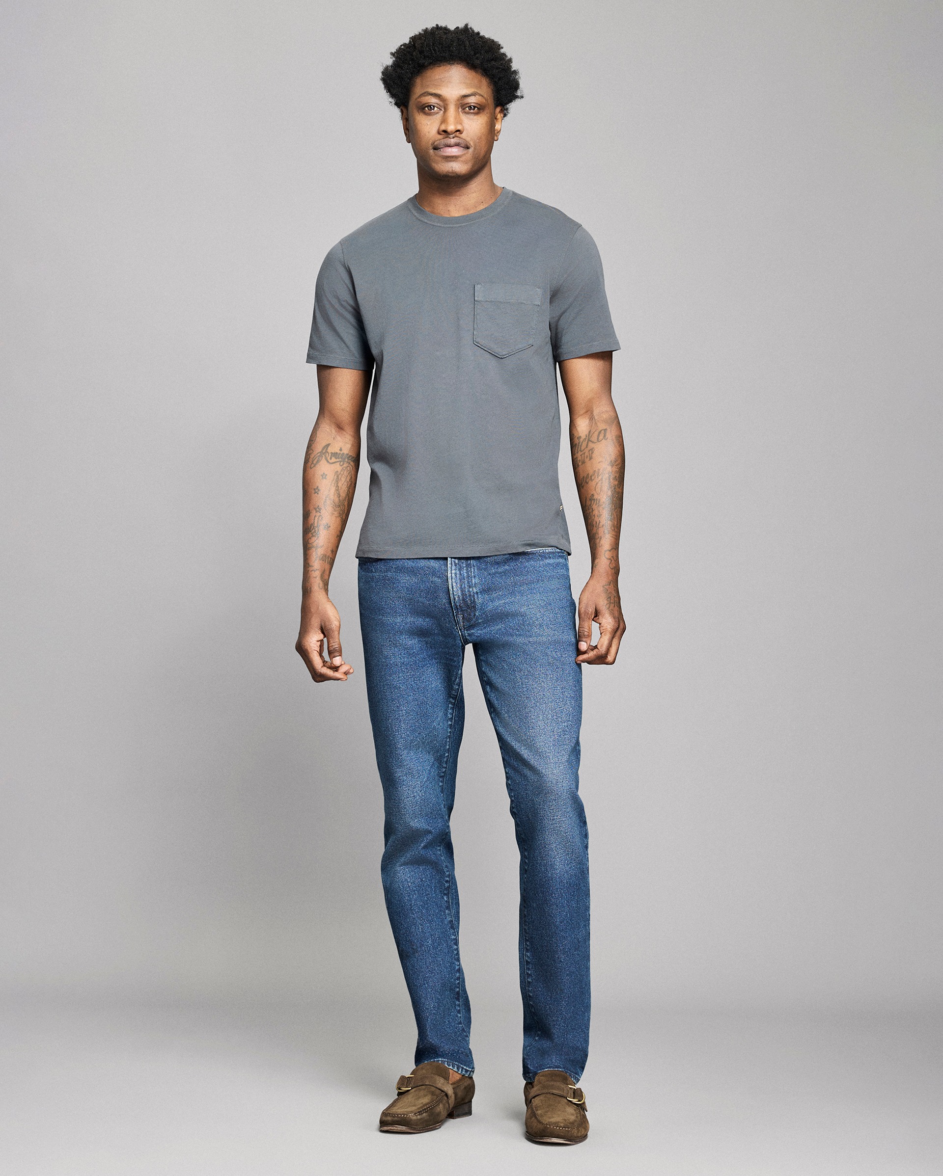 Our lightweight pocket tee is made from ultra-soft organic Pima cotton and garment-dyed for a lived-in look and feel. It's finished with stitch detailing at the chest pocket reminiscent of our signature heirloom ribbon stripe and features cover-stitching throughout for added durability. It's a seasonless wardrobe staple.