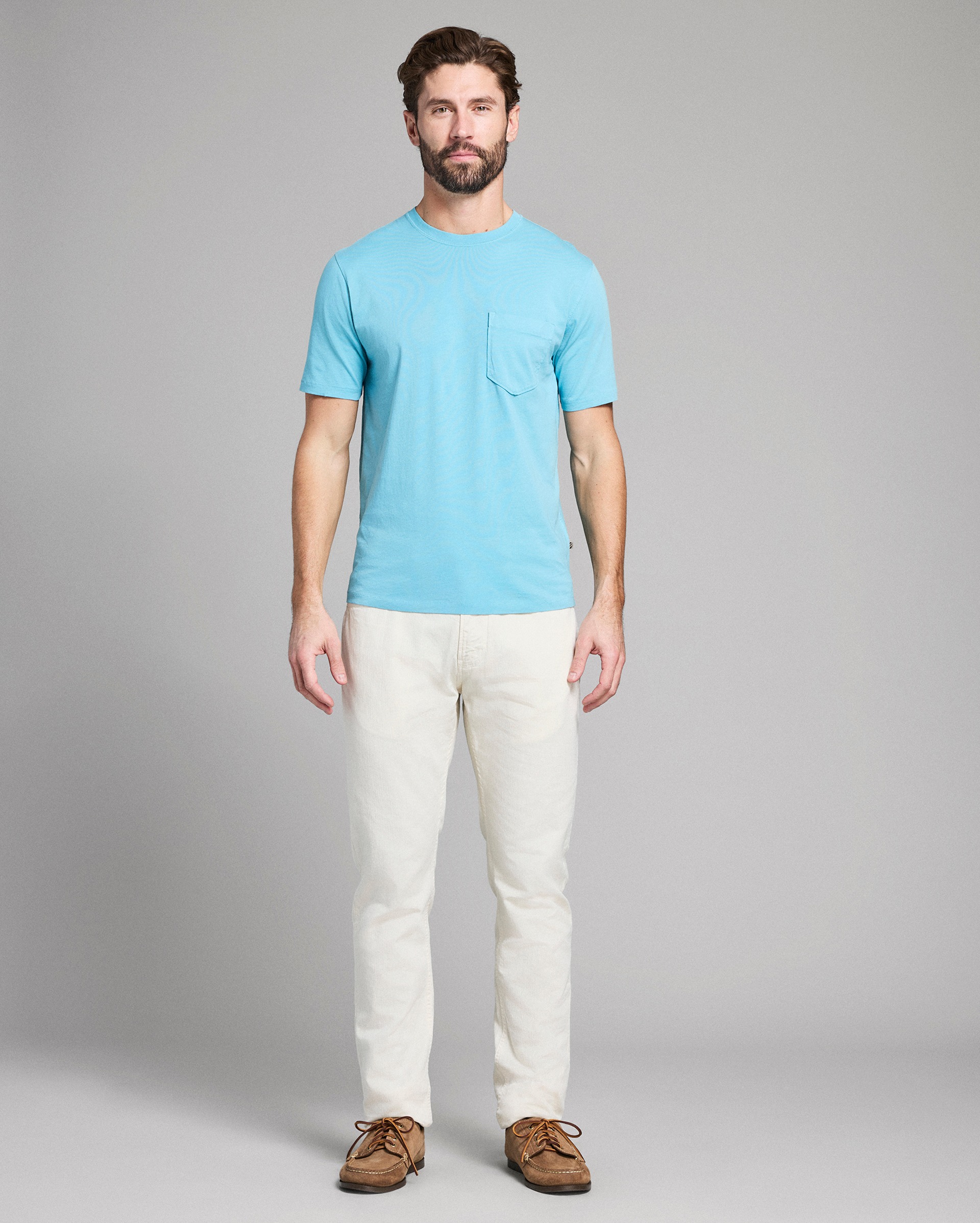 Our lightweight pocket tee is made from ultra-soft organic Pima cotton and garment-dyed for a lived-in look and feel. It's finished with stitch detailing at the chest pocket reminiscent of our signature heirloom ribbon stripe and features cover-stitching throughout for added durability. It's a seasonless wardrobe staple.