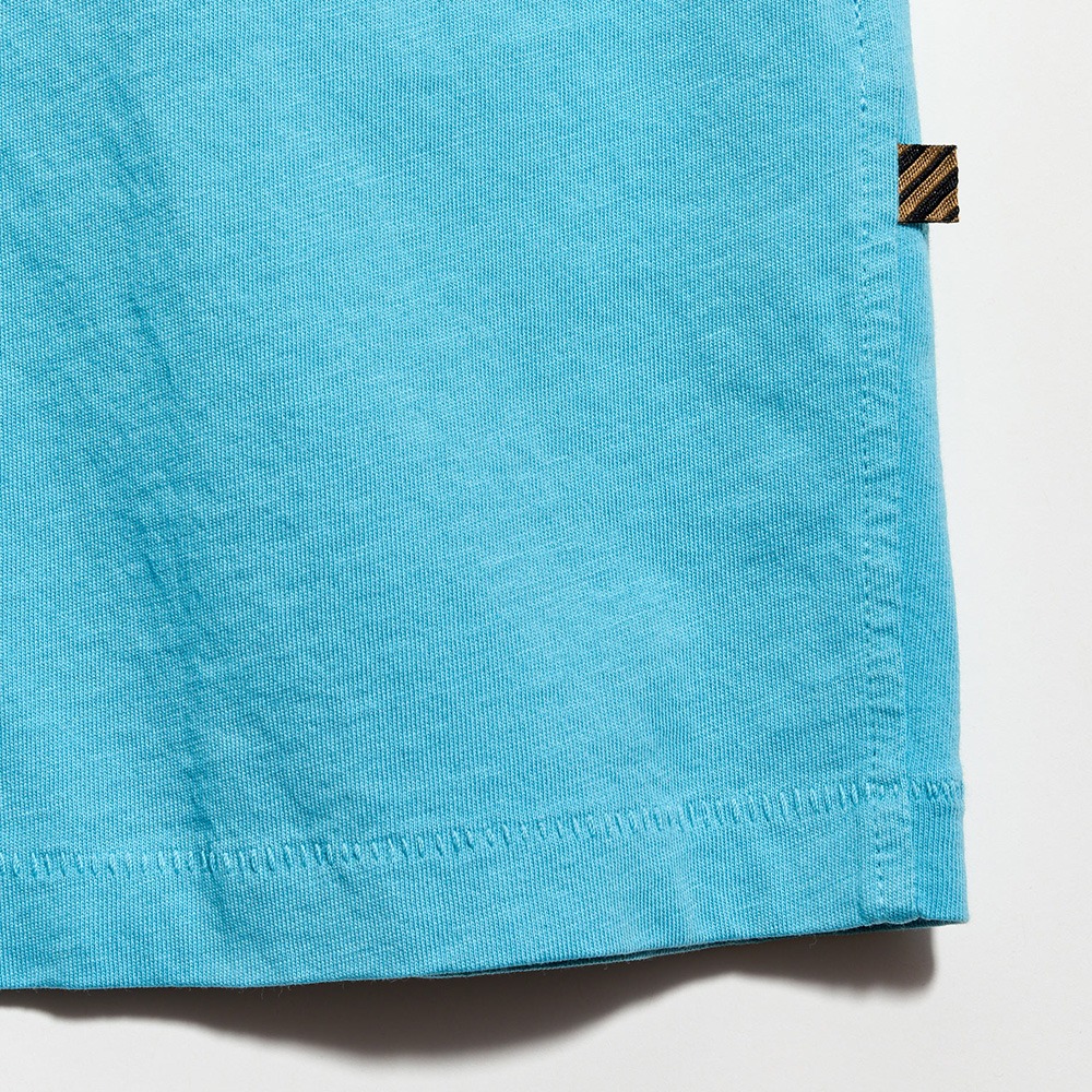 This t-shirt is garment dyed, organic Pima cotton with an ultra-soft hand.