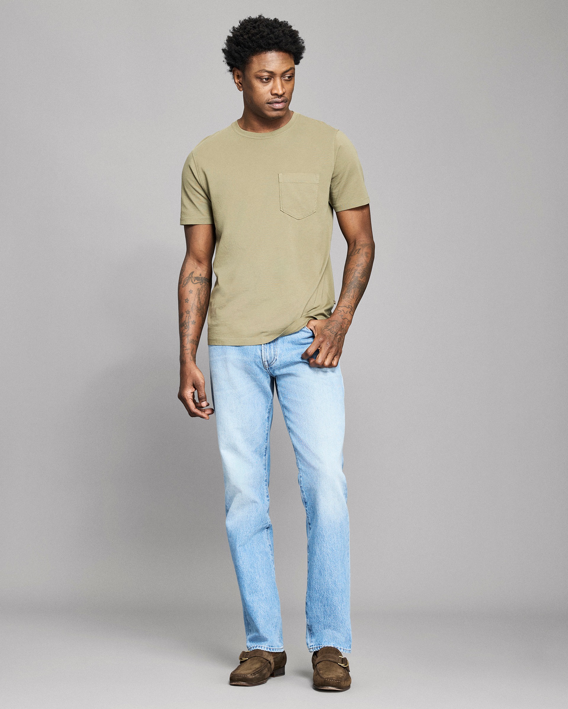 Our lightweight pocket tee is made from ultra-soft organic Pima cotton and garment-dyed for a lived-in look and feel. It's finished with stitch detailing at the chest pocket reminiscent of our signature heirloom ribbon stripe and features cover-stitching throughout for added durability. It's a seasonless wardrobe staple.