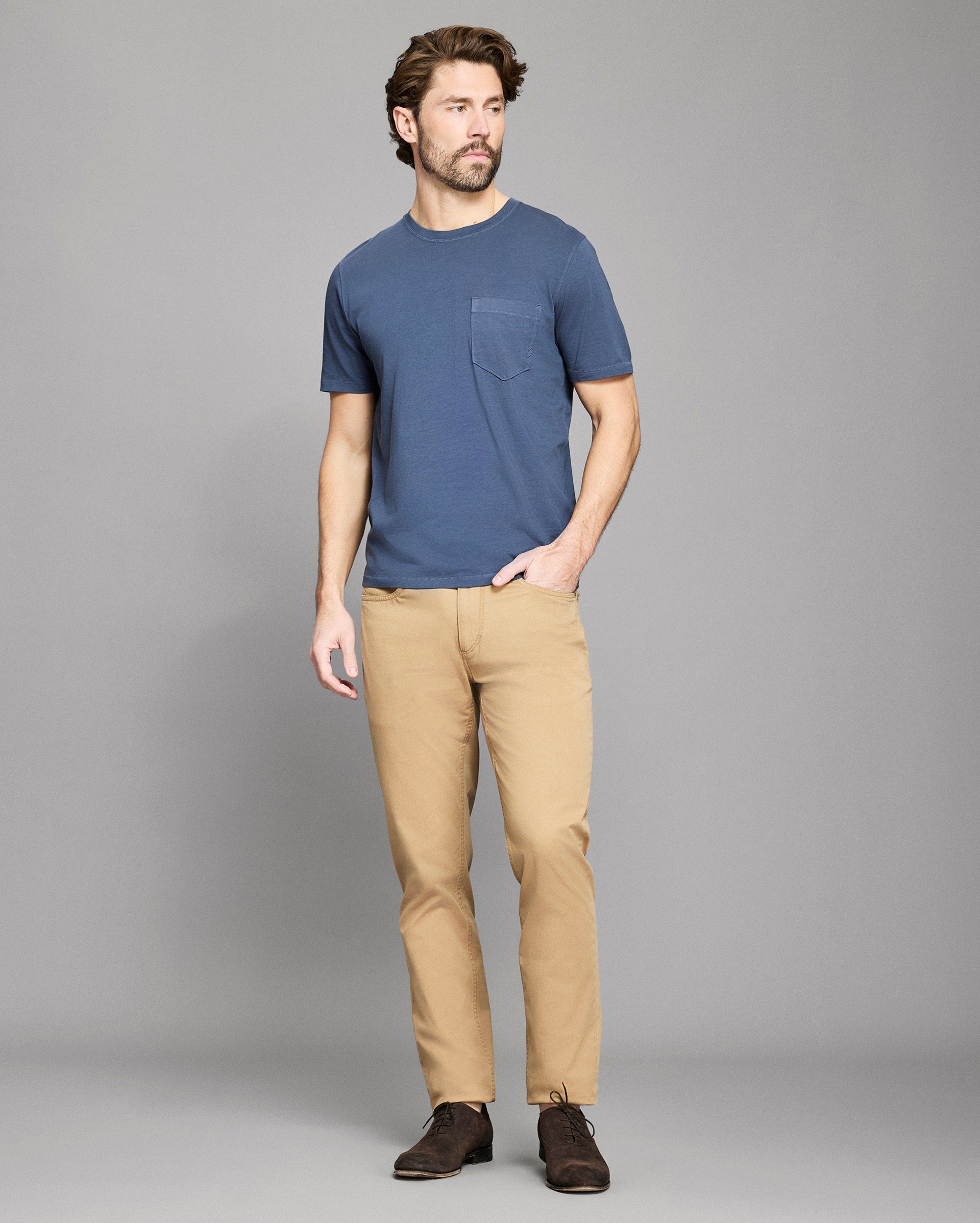 Our lightweight pocket tee is made from ultra-soft organic Pima cotton and garment-dyed for a lived-in look and feel. It's finished with stitch detailing at the chest pocket reminiscent of our signature heirloom ribbon stripe and features cover-stitching throughout for added durability. It's a seasonless wardrobe staple.
